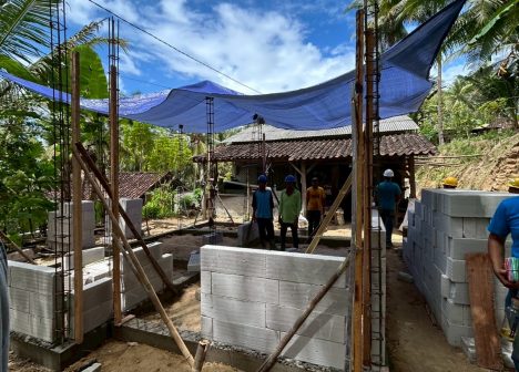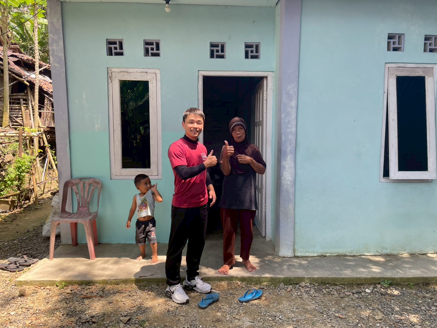 インドネシアのGVでは、チームをサポートしてくれる現地コーディネーターが滞在期間中常に帯同してくれます。私たちのコーディネーターには、2年前と同じ、ハリさんがついてくれました。ハリさんと再会することができ、非常に懐かしく、安心感を感じたことを覚えています。そして迎えた建築初日、今回支援することになったホームオーナーさんは、ラトモさん一家です。小さなお子さん2人を抱える4人家族です。現在のお住まいは、コンクリートと竹で建てられていましたが、前回のご家族同様、家の構造は脆く、トイレや浴室が屋外に設置されているなど、生活の不便さだけでなく、安全面にも不安を抱えた生活であることが伺えました。