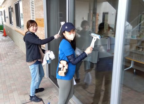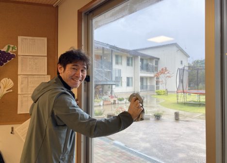 また、施設の食堂と交流室の床や窓、建物の壁の清掃にもご協力いただきました。普段はなかなか手の行き届かない床や壁を水拭きし、窓を拭きあげていただくと、汚れが落ち、空間が明るく感じられるようになりました 。活動後、昼食を食堂で終えた子どもたちが「食堂の窓がきれいになっていた!」と嬉しそうに話してくれる場面もあり、今回の取り組みが施設の子どもたちにとっても意義あるものとなったことを実感しました。