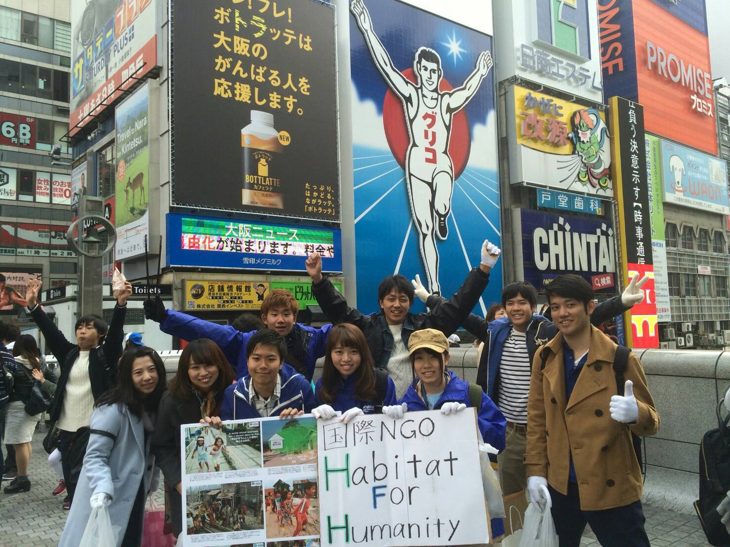 大阪の人々にハビタットの活動を少しでも知ってもらう、興味を持ってもらう、これを目標にかかげ取り組んだHYLB。「いつもとは一味違った広報活動で、自分たちも楽しめる企画を作りたい」、そう意気込み、どのようにすればより大阪の方々が目をとめてくれるのか、看板づくりや募金を集める際に伝えるメッセージ、メンバーの服装など、ひとりひとりが意見を出し合って企画を考えました。