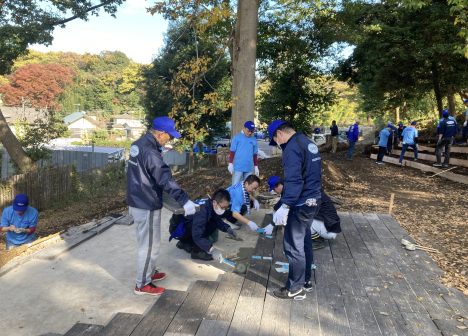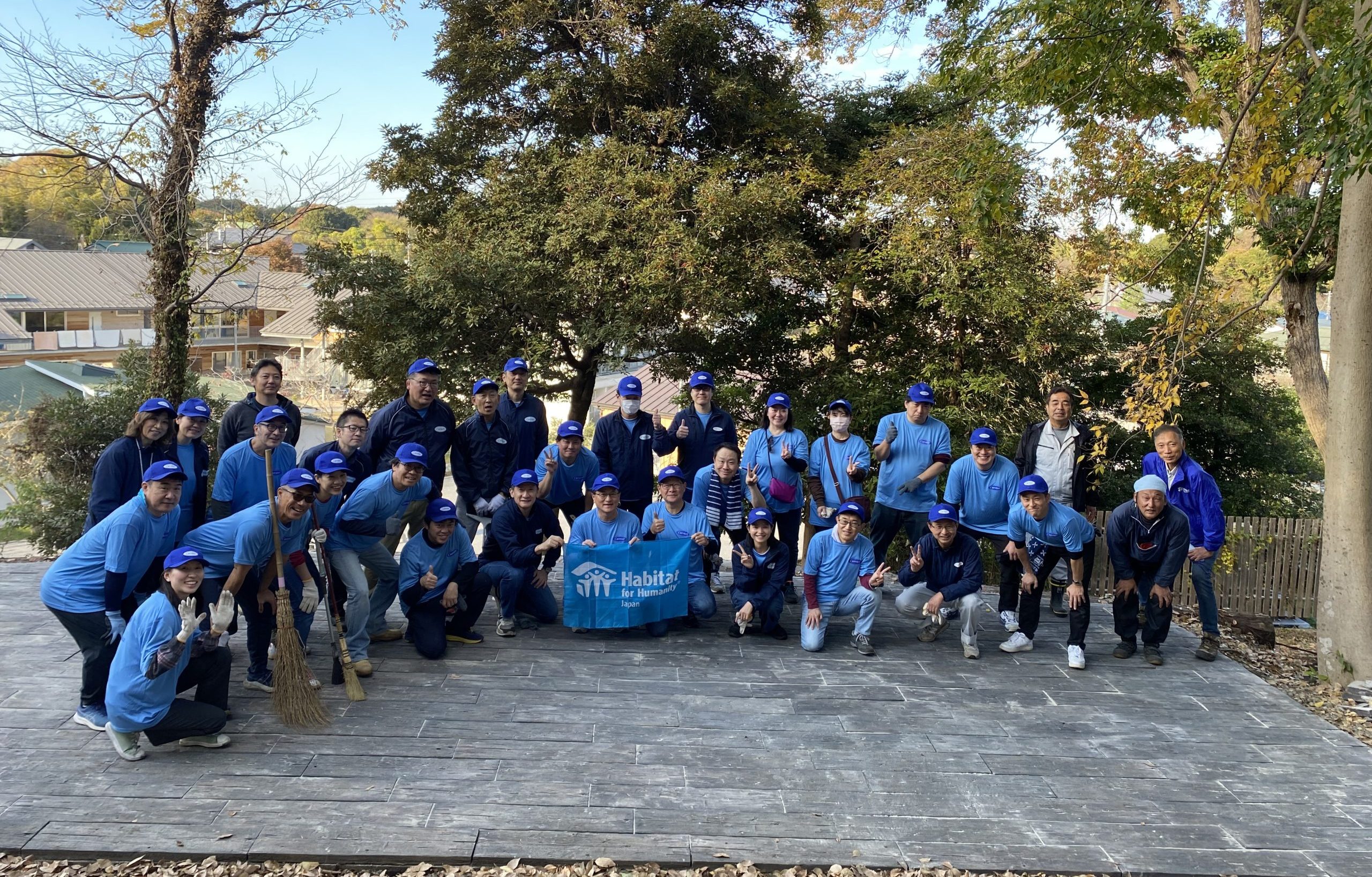 On November 22, under clear autumn skies, Habitat Japan completed all Phase II activities of the “Outdoor Facility Enhancement Project” at Kodomo no Sono, a children’s home in Chigasaki City, Kanagawa Prefecture. This effort was strongly supported by Carrier, whose members in Japan have been continuously involved since the early stages of the project. A total of 28 employees participated, marking their fourth volunteer activity.