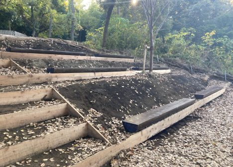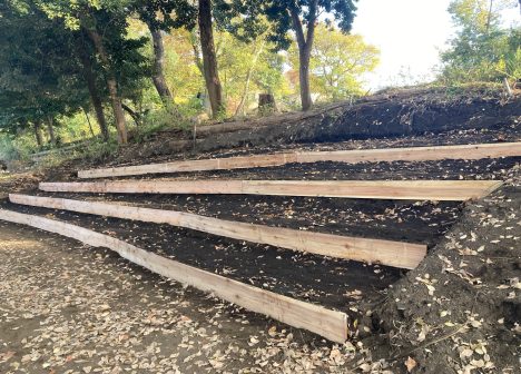 Finally, finishing work was done on the log benches installed on the slope. To ensure long-term safe use, the logs required three coats of preservative. Despite the uneven footing on the slope, all tasks were completed on schedule thanks to the cooperation of the volunteers.