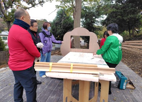The Playground Project utilizes the wooded hillside behind the facility to create spaces that foster children’s healthy growth. In this activity, Henkel Japan volunteers helped produce a large wooden kamishibai (picture-story show) frame for the Forest Stage, designed to nurture children’s creativity and emotional development.
